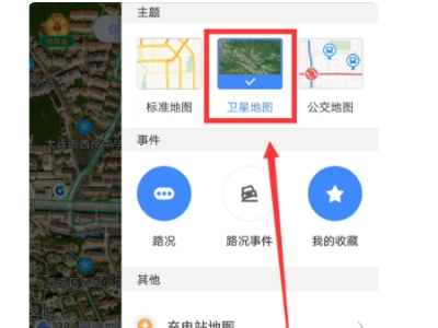 三、在切换界面中,我们需要找到“卫星地图”的选项,如下图所示。
