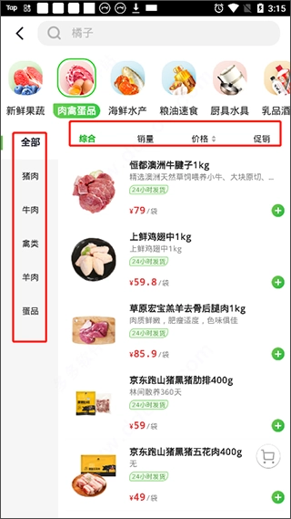 3、其中每种不同类型的商品都被详细划分成了多种分类,用户可自由进行筛选;