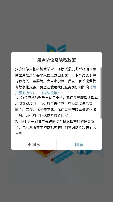 2、阅读并同意扬州智慧学堂的用户协议