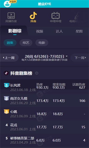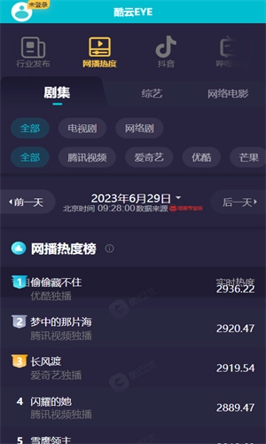 酷云EYE是酷云数娱推出的产品,作为国内首款向大众免费开放的专业电视大数据工具,它直接连接全国数千万智能电视和机顶盒终端,以秒级的刷新速度把观众真实的换台、停留、回看等行为转化为可视化图表,使得电视台、广告主、剧综宣发方乃至普通观众都能在手机上第一时间了解节目收视情况,摆脱传统抽样调查存在的滞后性与偏差问题。