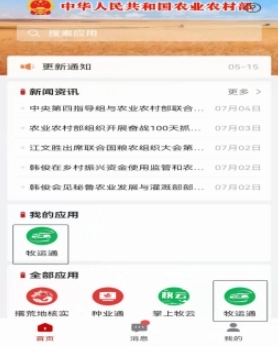 1.首先在本站的“农业农村部政务通”平台,于首页的全部应用程序列表中找到“牧运通”应用,然后完成注册操作。