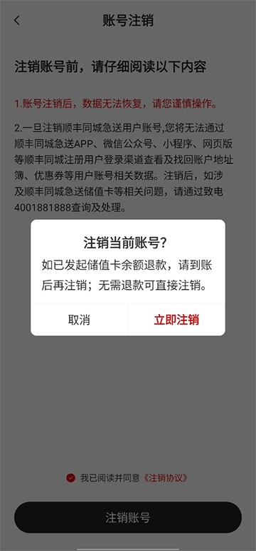 5、请勾选“我已阅读并同意《注销协议》”这一选项,随后点击“注销账号”按钮