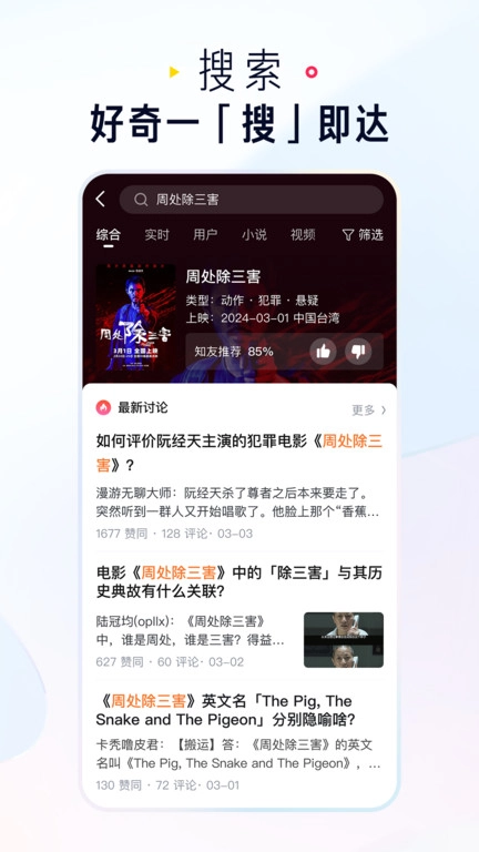 【全局搜索,应有尽有】 无论是近期热门电影、头条新闻,还是你感兴趣的人物与话题,都能在知乎轻松找到,让短时阅读也变得妙趣横生。通勤途中或是睡前时光,输入任何你好奇的关键词进行搜索,想必总能发现新的惊喜。用户们最常关注的领域涵盖职业通识、美好生活指南、社科常识、经济规则,此外还有法医笔记、人工智能、户外攀岩、希腊神话等丰富内容。