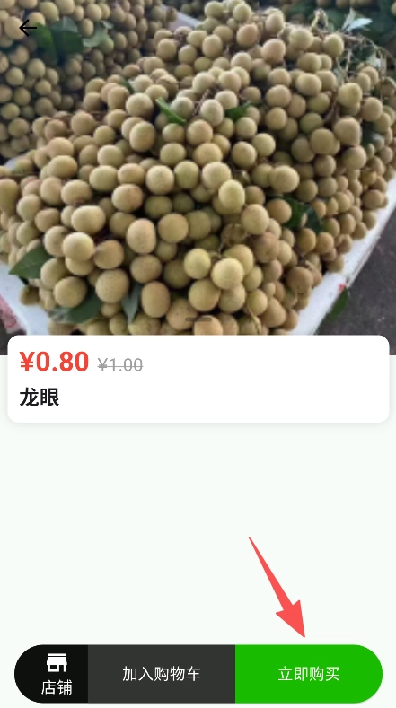 2、选择心仪水果(如龙眼),点击立即购买。