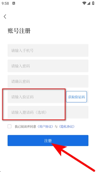 5、输入验证码,勾选已阅读并同意后,点击注册,完成操作。