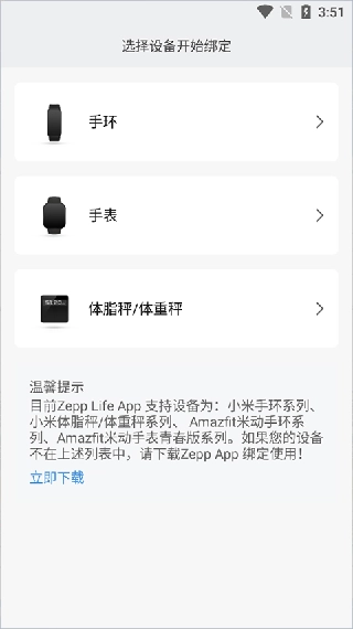 2. 在添加设备页面,点击【手环】选项。