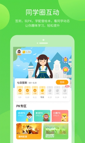 4、把学习和社交互动结合起来,借助同学圈、PK功能,让学习氛围变得更有趣味性,也更具竞争力。