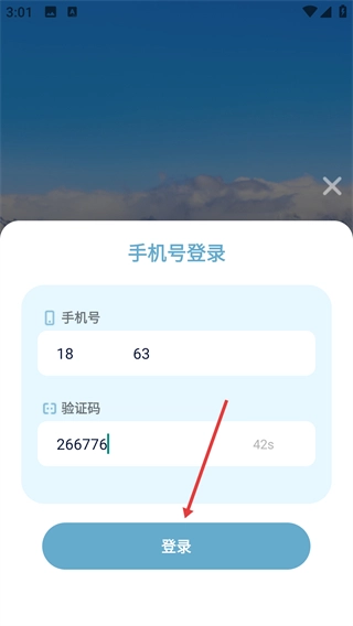 4、在验证码输入框填写收到的内容后,点击【登录】按钮提交信息,完成账号登录。
