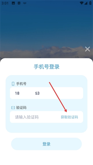 2、在手机号登录界面的输入框中填写目标手机号码,准备获取验证信息。