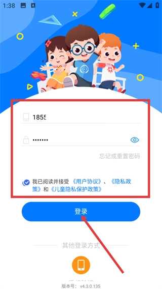 3、进入登录信息页面后,依次填写手机号与登录密码,勾选对应的相关协议,最后点击【登录】按钮,即可完成账号登录流程。