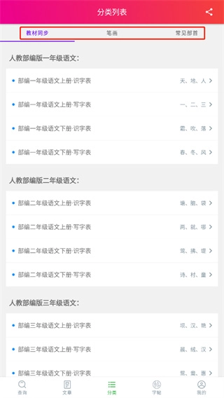 1、这里为用户提供小学各年级的识字表、写字表与词语表,助力大家更高效地学习。