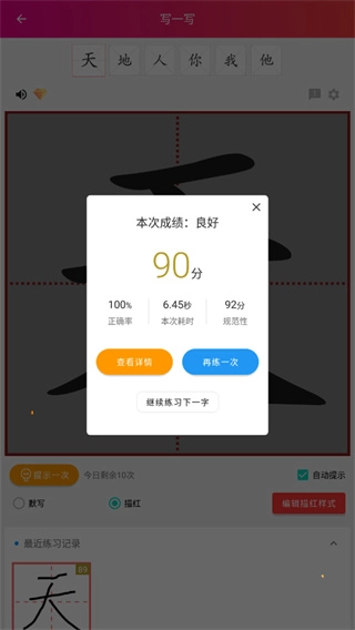 6、支持字帖模板,你可以临摹汉字的笔顺,从而更好的在这里进行练习;