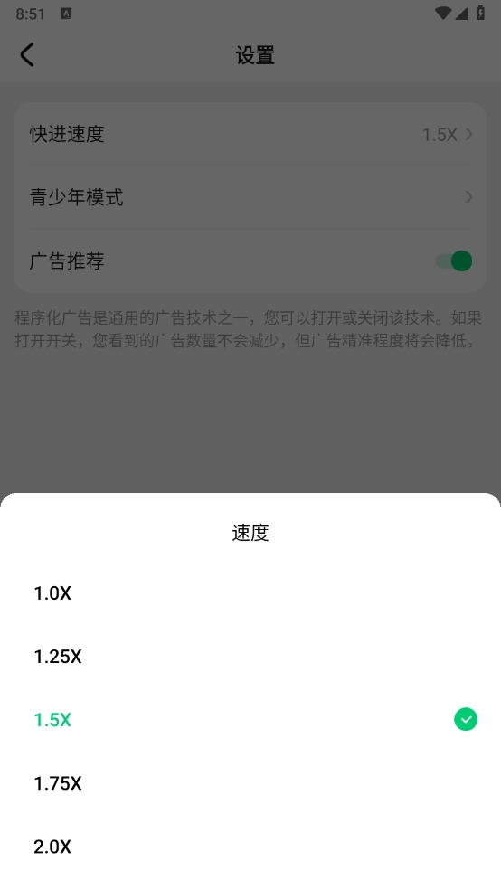 3、选择“快进速度”选项,点击你想要调整的播放速度就可以了。