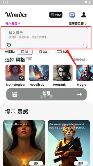 1、打开后,在首页点击指定的方框,接着在输入框内输入你希望AI进行创作的主题,尽情施展你的创意与想象力。