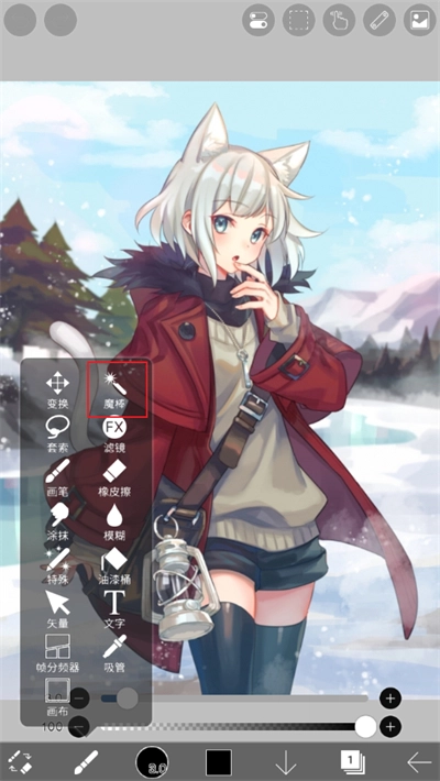 2、点击后会弹出许多的功能按键,然后点击其中的【魔棒】选项;