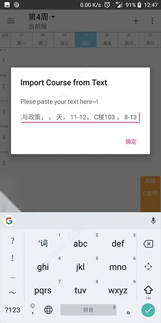 4、能够便捷地添加课程,只需输入课程名称、上课时间等相关信息,点击确定按钮即可完成设置。