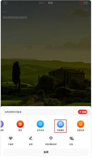 1、在歌曲页面点击“更多”选项,将音乐设置为“驾驶模式”,随后点击左上角的“蓝牙”图标。