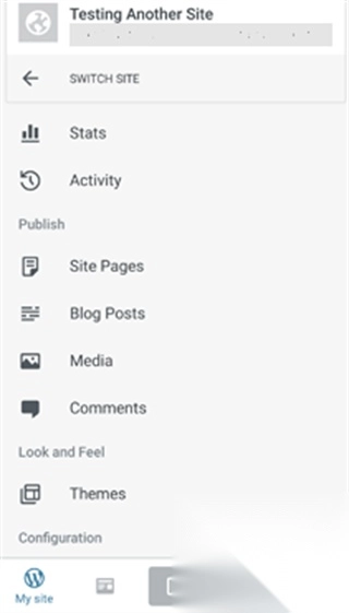 4、现在可以单击“继续”按钮继续前进并查看应用仪表板,这是您使用移动应用程序管理WordPress网站的地方
