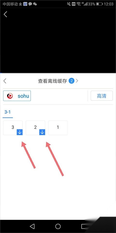 2、在播放画面下方刷新出的【查看离线缓存】页面里,点击想要的剧集(也可以点击全部剧集),该剧集视频就会被添加到缓存列表中进行缓存。