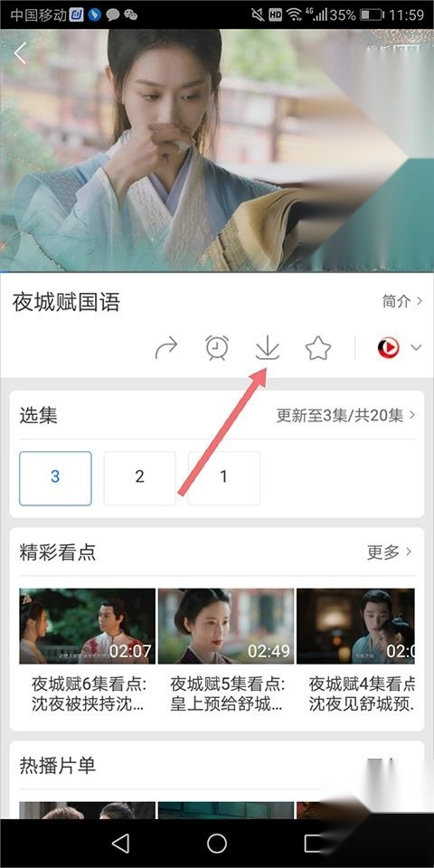 1、首先用户在电视剧播放页面里,点击播放画面下方的图标(下图红色箭头所指的区域)