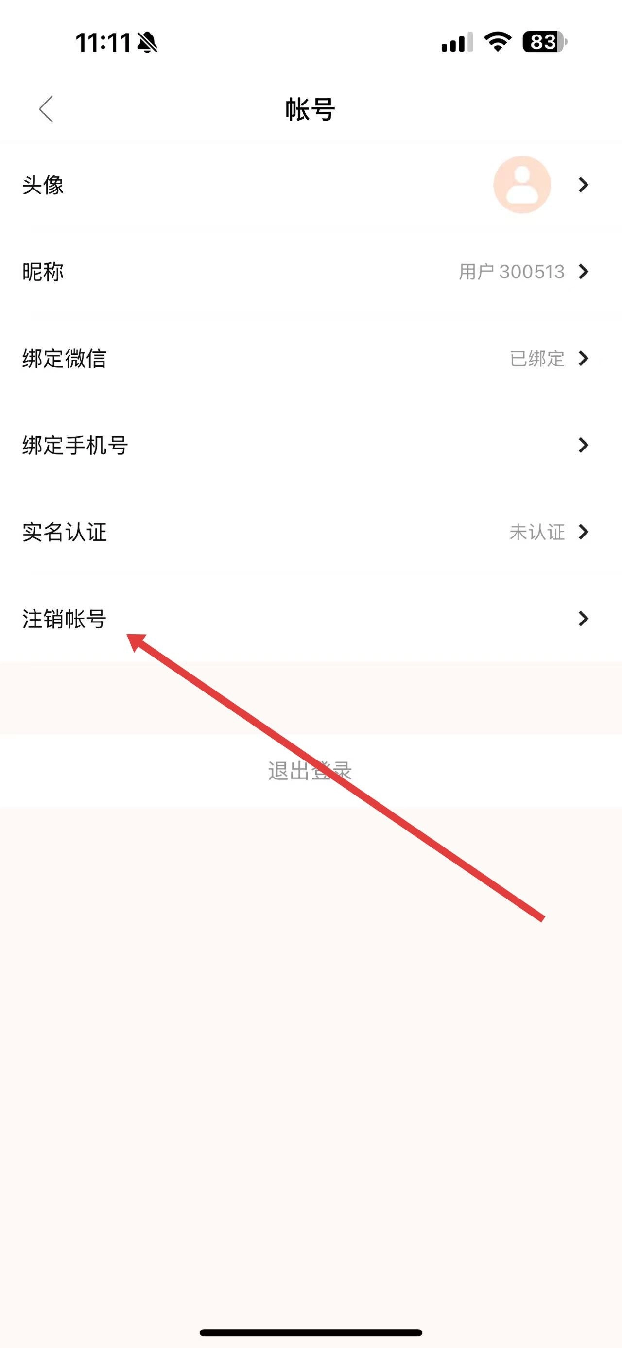 3、在帐号设置界面里,找到并点击注销帐号选项。