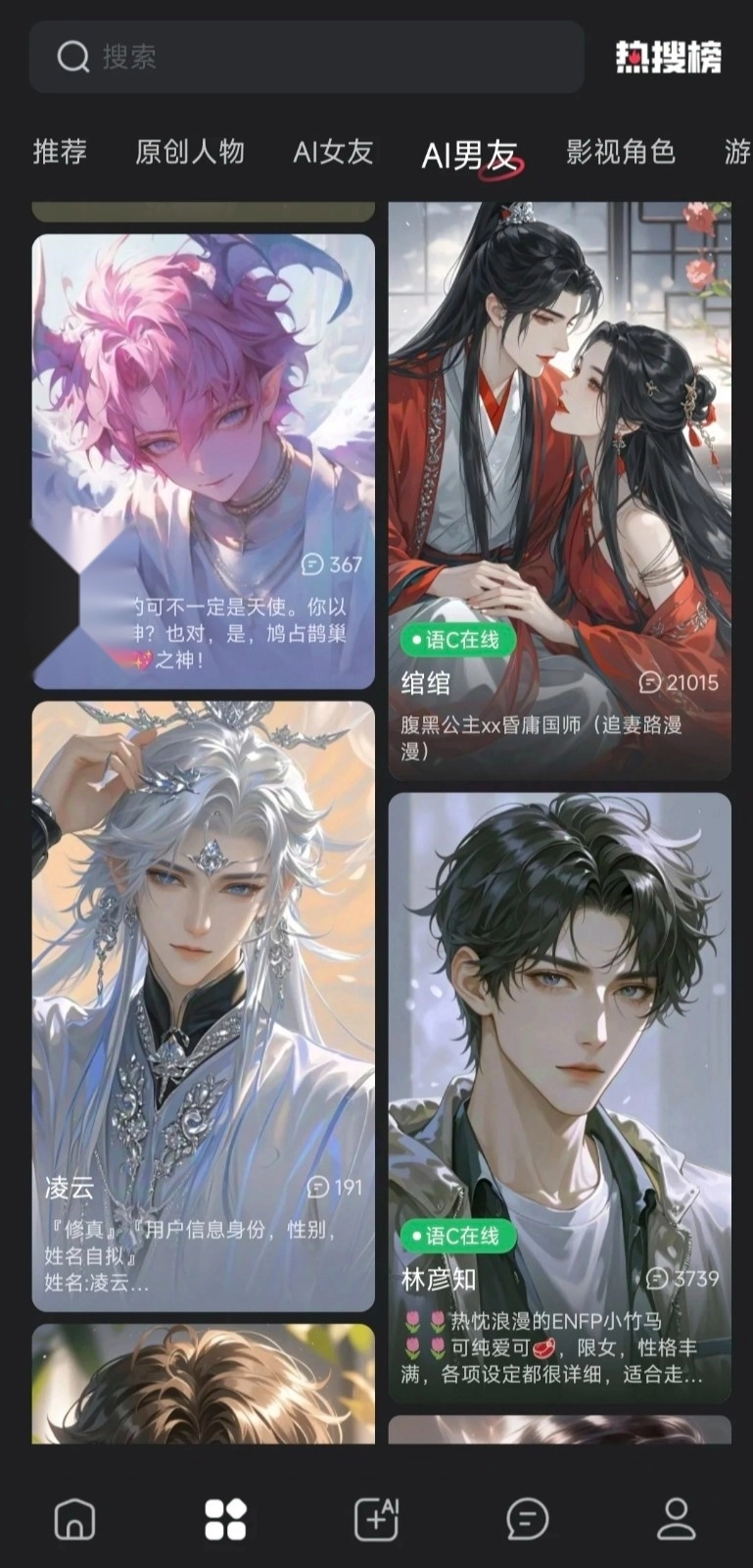 2、【AI聊天】提供全天候不间断的智能聊天服务,你可以和心仪的AI角色展开深度对话,一起解读剧情、探索角色的内心世界,还能借此释放压力。