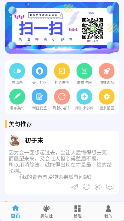 3. 在“美句社区”中可以刷新和管理美句小部件。