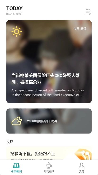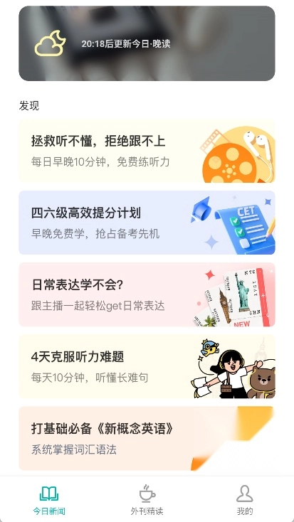 3、在首页中浏览并选择想要阅读的外刊文章。