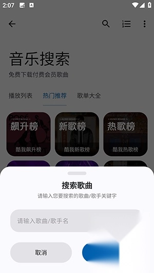 3、在搜索框中输入您想要的歌曲名称或歌手姓名。