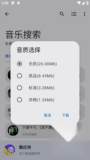 5、找到您想要的歌曲后,点击歌曲右侧的箭头图标,然后选择您需要的音质类型,即可开始。