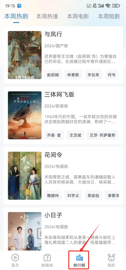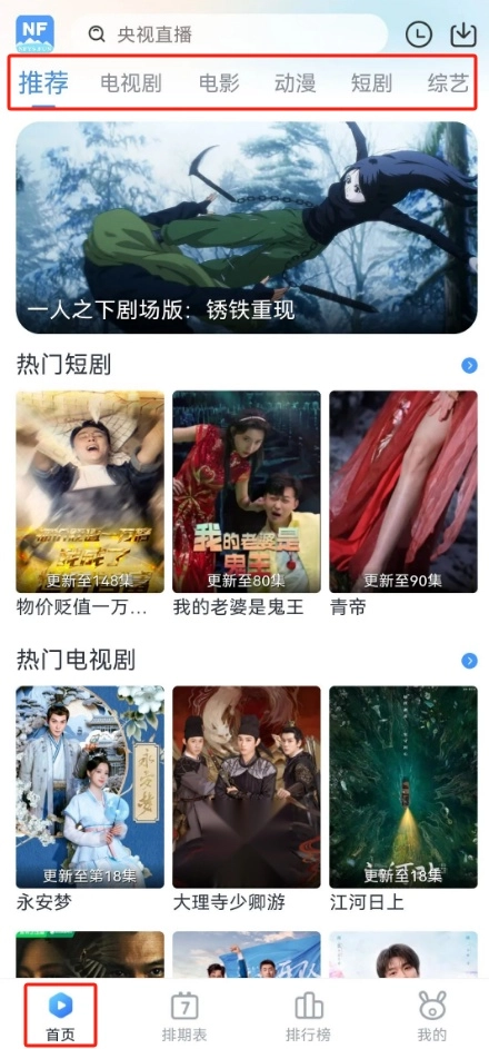 5. 排行榜:借助排行榜这一功能,能够知晓近期热度较高的剧集、动漫、电影和短剧资源,从而发现当下热门的影视作品。
