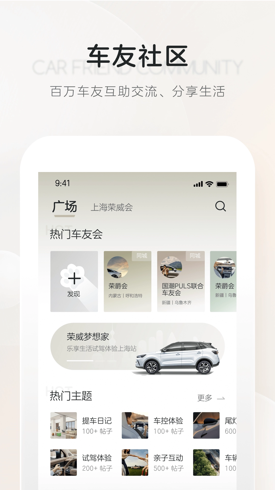 家园:分享上汽荣威精彩瞬间的车友圈。
