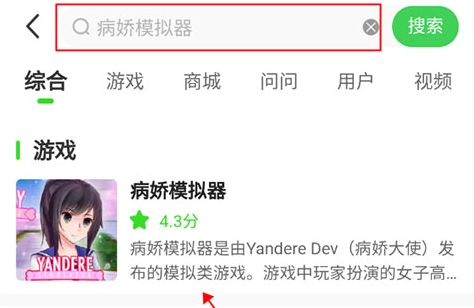 1. 启动弘电脑后,在搜索框里输入“病娇模拟器”,就能找到这款游戏了。