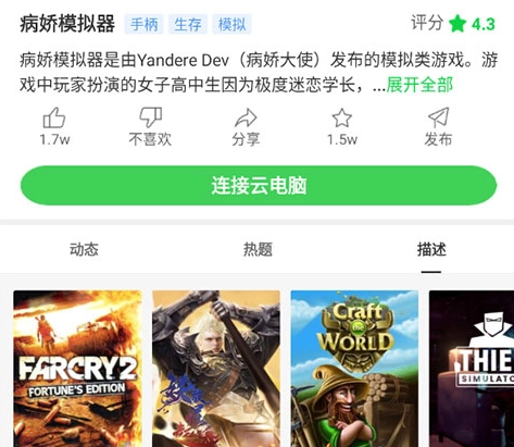 2. 点击进入游戏界面后,再点击“连接云电脑”选项,就能启动游戏了。