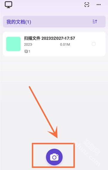 1. 在联想扫描王的主页上,点击页面中间偏下位置的相机图标,就能直接对准需要扫描的文件。