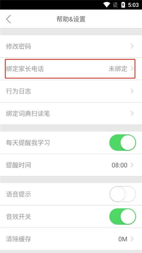 2、在设置中选择绑定家长电话;