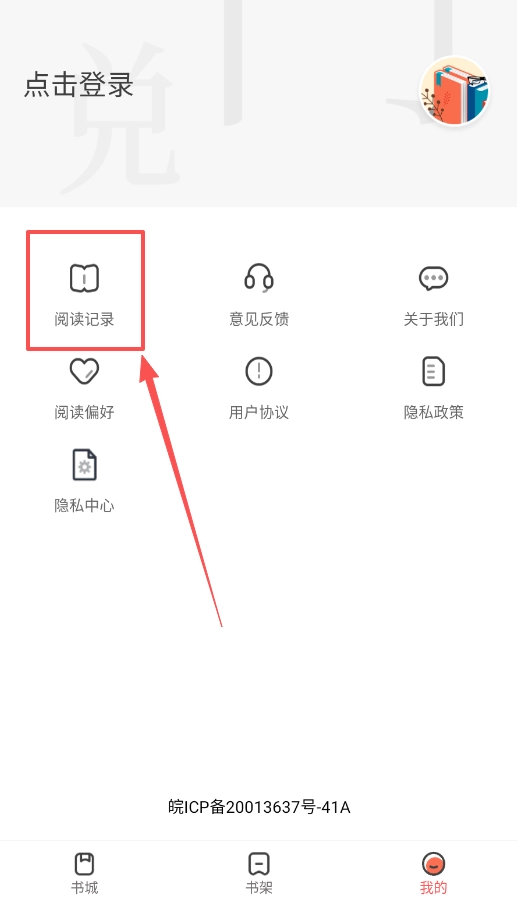4、登录账号后,可前往“我的”页面查看阅读记录,系统会统计你已阅读的字数,同时你也能通过意见反馈功能提出相关建议。