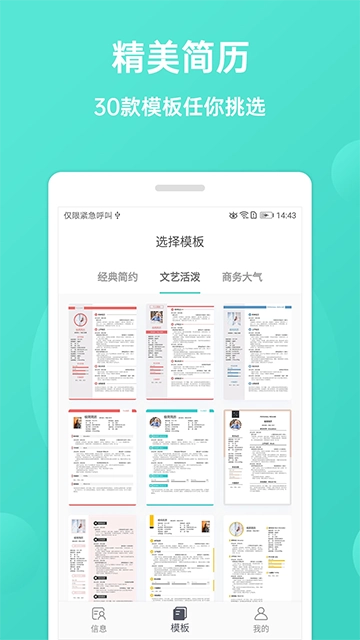 4、设有清晰的简历模板分类,方便用户依据这些分类信息找到适合自己的求职模板。