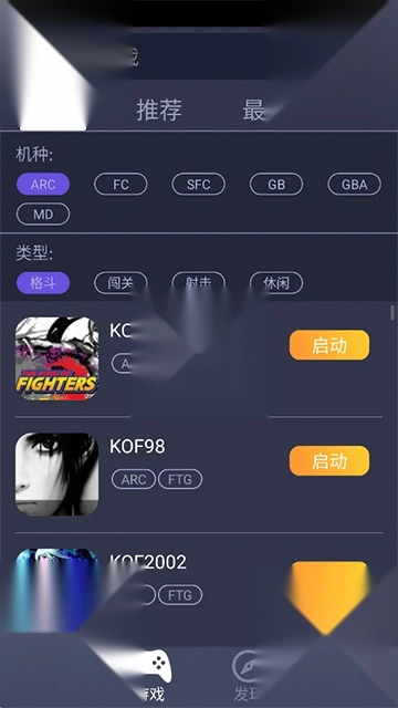 进入首页后,界面呈现如下,能看到街机游戏、fc游戏、md游戏等各类游戏。