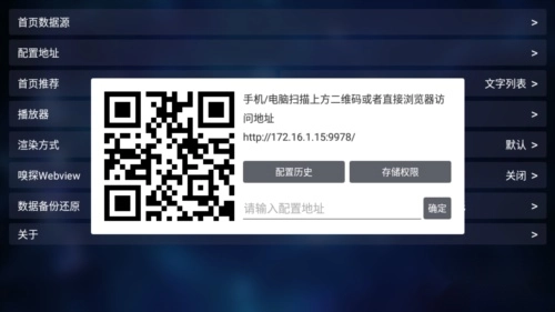 (2)点击配置地址,在弹出的配置窗口里面,填写影视源接口地址,确定即可。