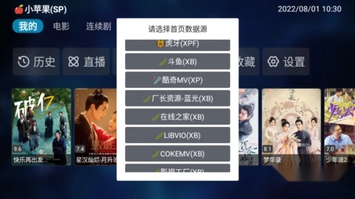 (3)完成配置后回到首页,等爬虫加载结束,此时你既能用搜索功能查找影片,也能再次点击“设置”来切换首页的数据源。