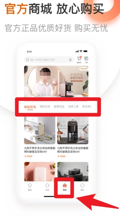 4. 在“商城”页面可选购智能厨电与配套工具,支持分类筛选与一键下单。