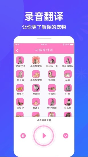 萌宠猫狗交流器能实现精准的宠物语言翻译,还提供更多翻译所需工具和宠物小百科,让用户养宠更省心!