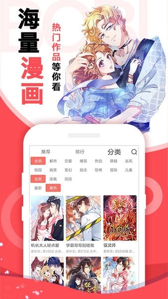 啵哔免费漫画是一款可在手机端浏览各类优质漫画的应用,汇聚了海量热门漫画作品,资源类型十分丰富。平台每日都会及时更新漫画内容并向用户推送提醒,提供完整高清的阅读资源,还会定期为用户推荐当前热门的漫画。该应用干扰且支持免费阅读,欢迎各位用户下载体验啵哔免费漫画!