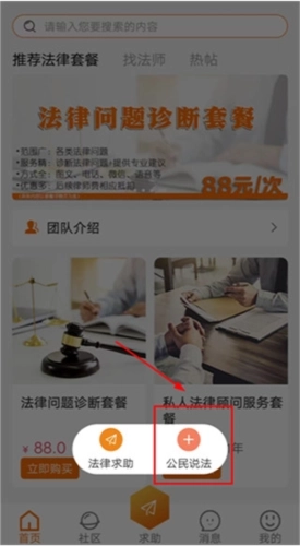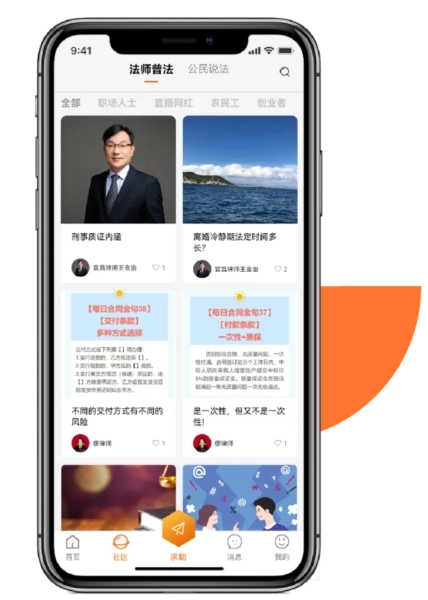 3、法律求助功能,让您随时随地发布各类法律咨询、文书求助,案件委托求助,无论免费或付费,均有各类法律人士为您专业解答。