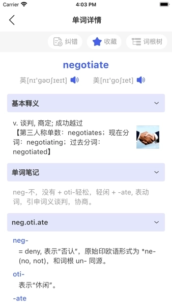 2.按词根分类记单词:具备词根分类功能,助力用户快速记单词。权威例句辅助用户掌握单词用法,让记忆更扎实。