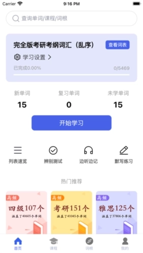 4、接着我们就能够选择需要学习的词库进行添加、导入了,然后在回到背单词界面开始学习就行了。