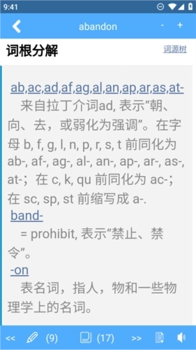 1.词根词缀汇总:整合了大量不同类型的词根与词缀,助力用户更高效地记忆单词。这些词根词缀是构成英语单词的基础要素,熟练掌握它们能够提升英语词汇的学习速度。