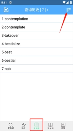 5、提供生词本。生词本中的单词可以按字母、难度、时间排序,随机显示。