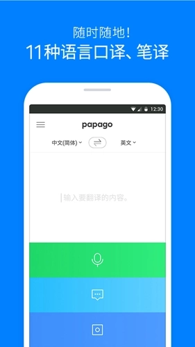 Papago是一款具备在线翻译功能的外语学习软件,快和翻译伙伴Papago携手同行吧!目前,Papago已支持韩文、英文、日文、中文(简体/繁体)、西班牙文、法文、越南语、泰语、印度尼西亚语、俄语、德语、意大利语等13种语言的翻译服务。作为一款手机在线词典翻译软件,它支持实时输入待翻译内容,覆盖多国语言翻译需求,更有语音翻译功能加持,让你不再为交流问题发愁,感兴趣的话快来体验吧!Papago致力于帮助用户破除语言障碍,还能为大家提供更多个性化服务。